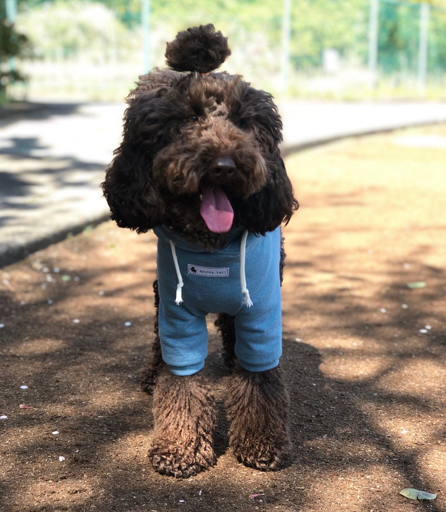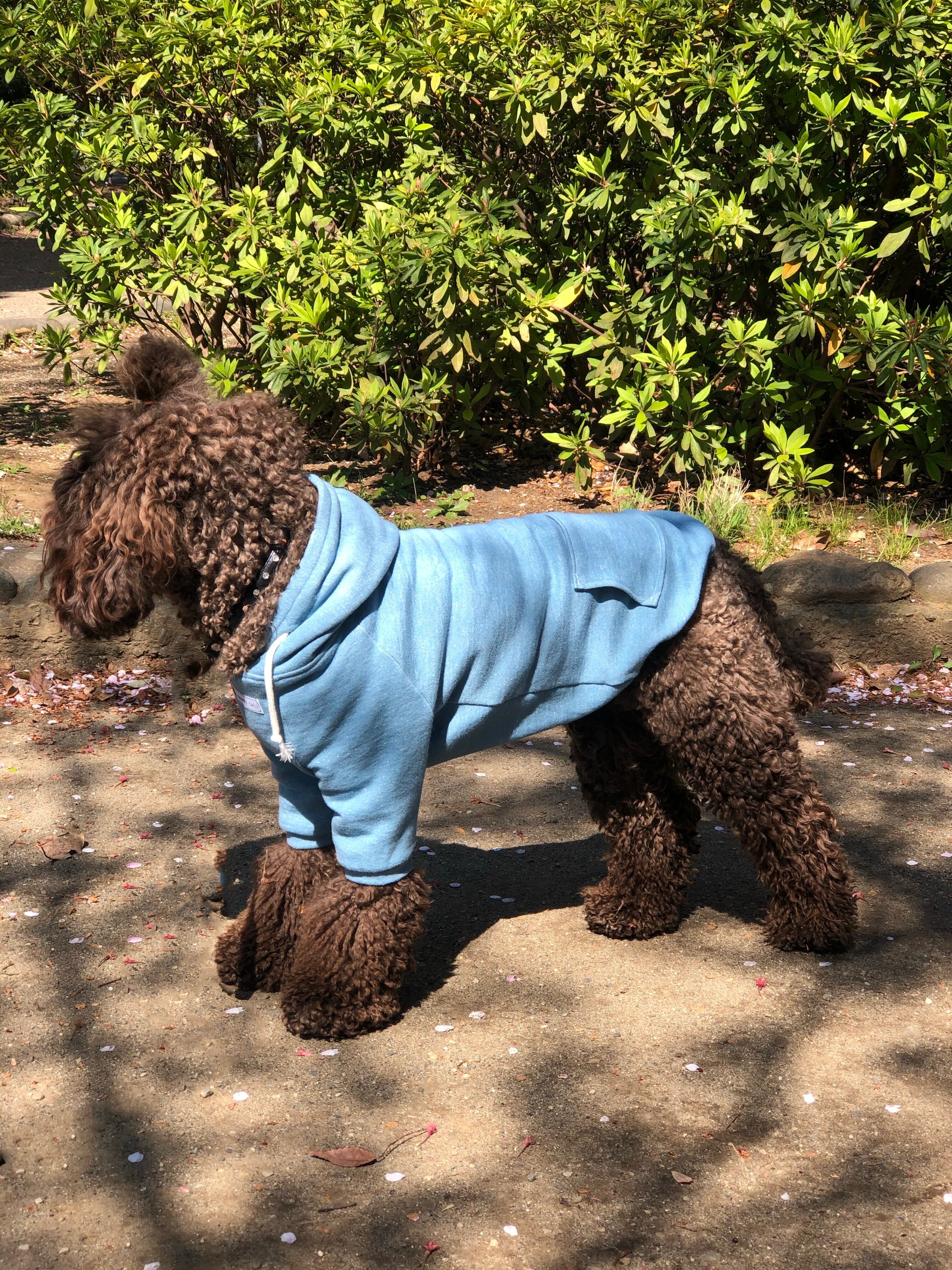 ・ミディアムプードル ♀ 首回り30cm、胴回り50cm、着丈40cm Lサイズを調整しています。